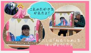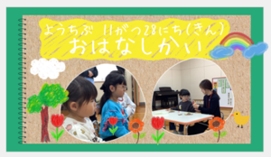 幼稚部では絵本に親しむことを目的に、毎年「おはなし会」をしています。親子で選んだお気に入りの絵本を劇やペープサート等にして表現し、みんなの前で発表します。